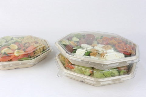 Unsere BePulp Servierplatten werden mit recycelbaren und perfekt passenden PET-Deckeln geliefert, um die Frische der Lebensmittel zu präsentieren.