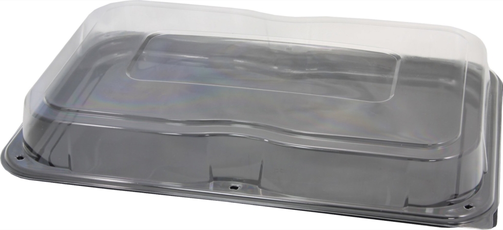 Für jede Plattenschale ist auch ein passender Deckel mit einem sehr effizienten Verschlusssystem und hervorragender Stapelbarkeit erhältlich, was einen sicheren Transport der Speisen garantiert.