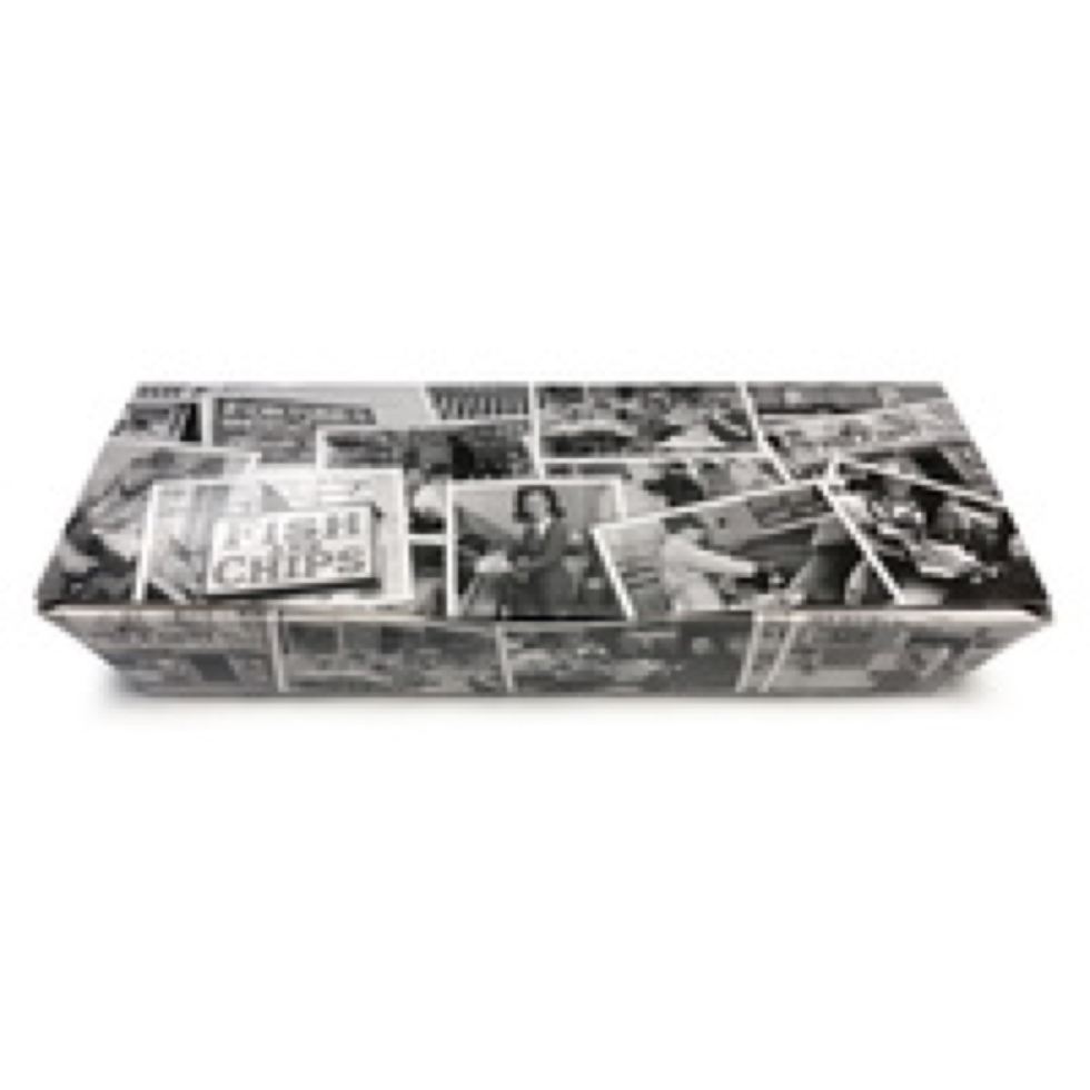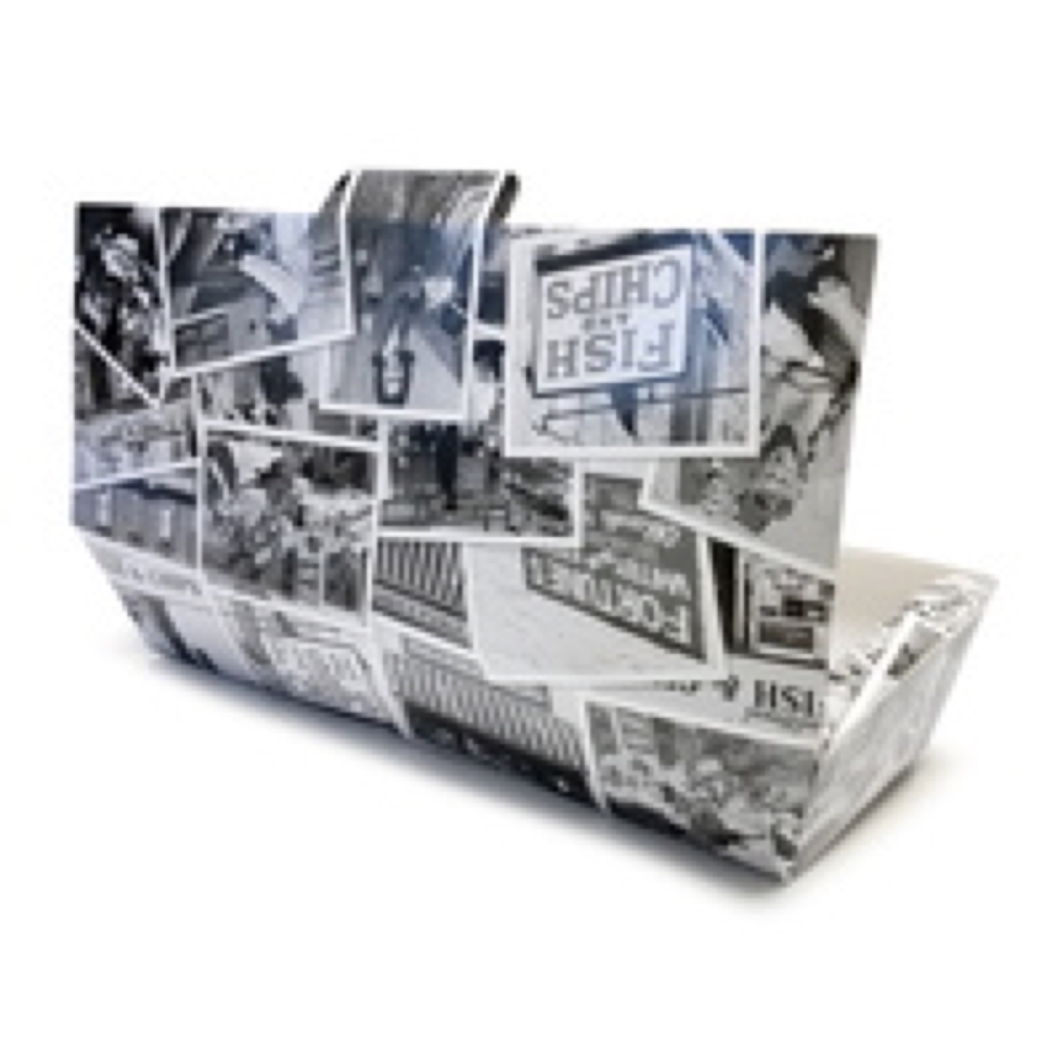 Wer kann sich noch daran erinnern, dass vor nicht allzu langer Zeit Fish & Chips zum Mitnehmen in die Zeitung von gestern eingepackt und auch darin serviert wurden? „Retro Zeitungsdruck“ fängt diese britische Nostalgie mit einem genialen Verpackungsdesign im Stile einer gedruckten Zeitung ein! Was gibt es Besseres, als knusprig gebackenen Fisch und leckere goldene Pommes Frites in der Retro-Zeitungsdruck-Serie zu servieren... diese typisch britische Verpackung sah noch nie so gut aus!
