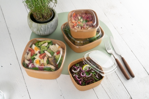 Hochtransparenter rPET-Deckel, der perfekt zur Kraft quadratischen Schüssel 400 & 580 ml passt. Entscheiden Sie sich für unsere beschlagfreien, recycelten PET-Deckel, die dafür sorgen, dass Ihre Lebensmittel immer gut sichtbar bleiben. Der rPET-Deckel garantiert maximale Sichtbarkeit des Inhalts und ist aus mindestens 50 % recycelten Materialien hergestellt.