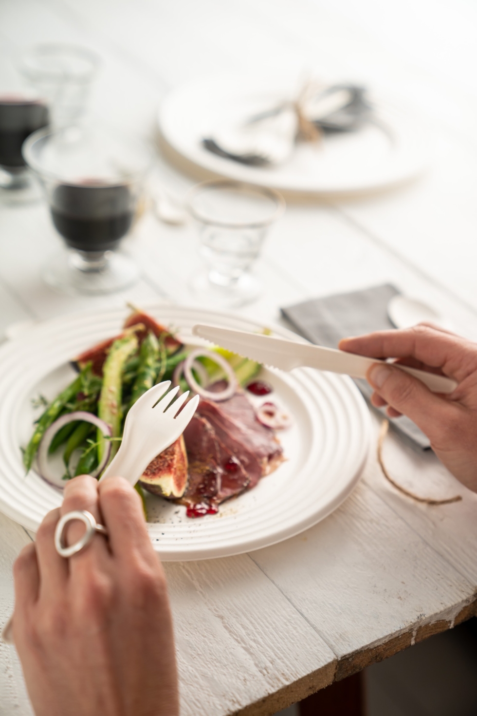 Grâce à leurs larges rebords, les assiettes Wave sont solides et pratiques : elles conservent leur rigidité et sont faciles à manipuler et à manger avec tout type d'aliments.