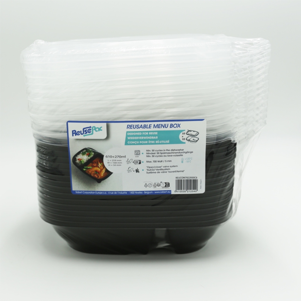 La gamme Reusepac répondra parfaitement aux besoins des marchés de la restauration à emporter et des repas livrés : des emballages réutilisables qui donne fière allure à vos plats en toutes circonstances, même après lavage (min. 50 cycles dans le lave-vaiselle). Le set d'emballage alimentaire réutilisable est micro-ondable avec un nouveau système de valve "ouvert/fermé"