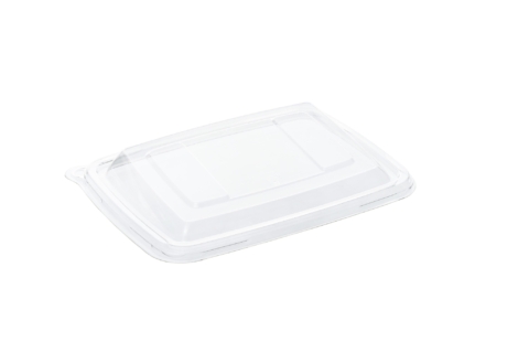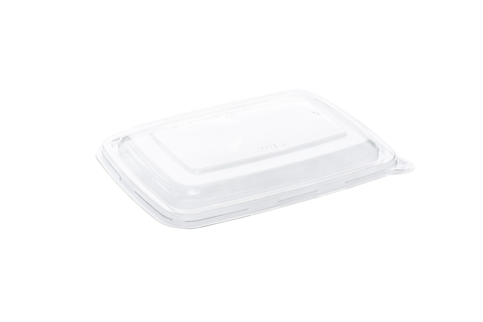Couvercle en rPET pour la barquette BePulp rectangulaire 16x23cm. Choisissez nos couvercles antibuée en PET recyclé post-consommation qui garantissent que vos aliments restent visibles à tout moment. Le couvercle en rPET vous assure une visibilité du produit maximale et est composé d'un minimum de 50% de matériaux recyclés.