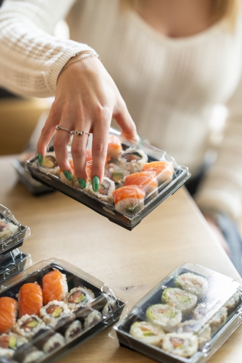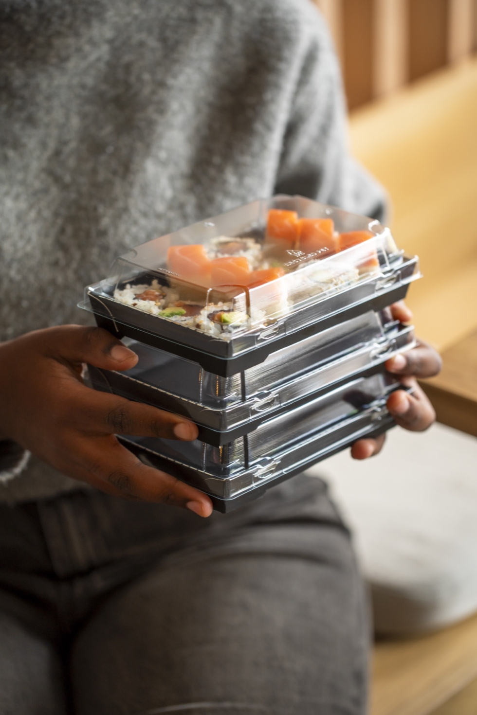 Couvercle anti-bué pour nos barquettes en carton Tray2Go offre une excellente visibilité du produit, le couvercle à fermeture unique et innovante se clipse et se verrouille fermement offrant une protection optimale aux aliments à déguster sur le pouce ou pour livraison. Sa fermeture à une seule main permet également d’optimiser l’efficacité lors de la préparation et du processus de fabrication. Le couvercle en rPET est composé d'un minimum de 50% de matériaux recyclés.