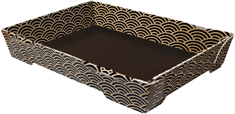 Notre nouvelle barquette en carton, à utiliser comme boite à sushis ou comme plateau avec couvercle pour tous plats réfrigérés à emporter, les pâtisseries et produits de boulangerie. Pratique à utiliser, notre gamme multifonctionnelle et polyvalente Tray2Go est dotée d’un plateau à double paroi robuste conçu pour un emboîtement efficace et un empilage sécurisé tout en conservant une excellente visibilité des produits. Le couvercle à fermeture unique et innovante se clipse et se verrouille fermement offrant une protection optimale aux aliments à déguster sur le pouce ou pour livraison. Sa fermeture rapide permet également d’optimiser l’efficacité lors de la préparation et du processus de fabrication.