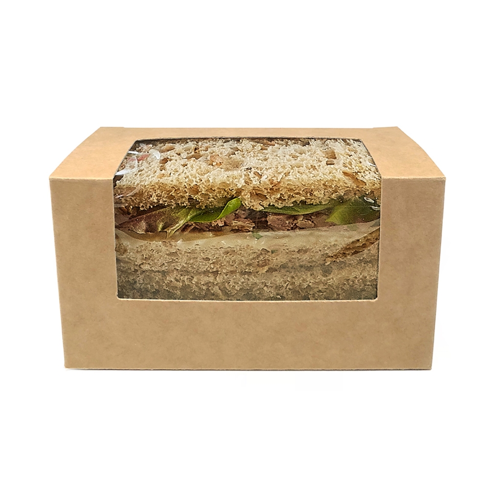 Our Simply Kraft bloomer boxes for sandwiches offer a natural eco look with range window for stand out shelf presentation. A comfortable hold for eating on the go and functional product protection makes this range a popular choice for grab & go lunches or cafés & deli’s serving freshly prepared food. Delivered flat packed. Customizable for bespoke print and branding!
