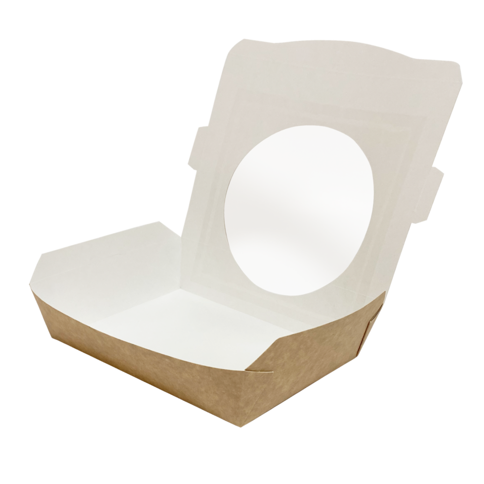 Our multi-food salad boxes fulfil all gourmet requirements. Featuring large display windows for stand out product presentation and with secure clip locking lid designs, hey are ideal and practical for food preparation, storage, transport, display and service. Delivered nested. Customizable for bespoke print and branding!