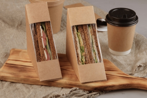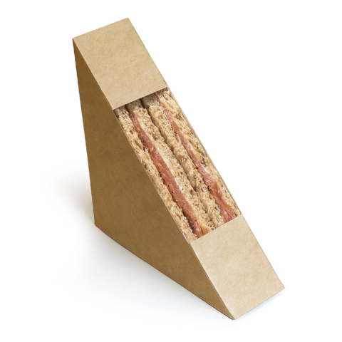 Our sandwich & wrap boxes fulfil all gourmet requirements. Conceived with a large display window and a secure clip lock design, they are ideal and practical from storage to transport, display and service. This products has got a window made from 30% recycled PET.