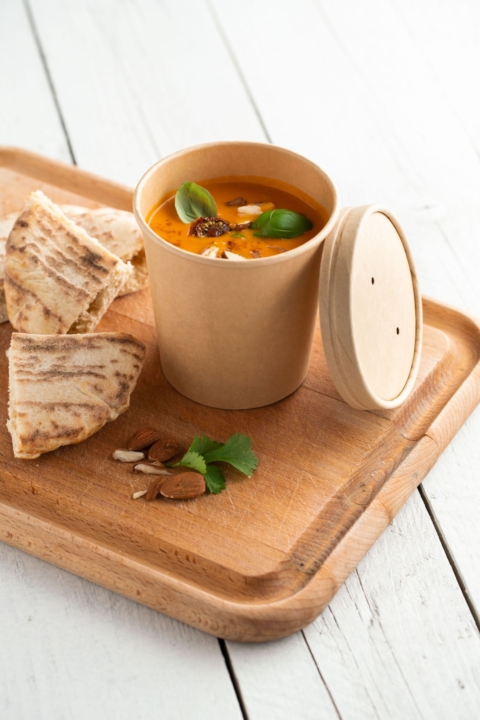 Available in 4 different sizes, our Multi-food cardboard pot is the perfect versatile food container to use as soup bowl, pasta container, snack box, ... They are easy to open, close, hold, fill and eat from. Thanks to these great features, leak-resistant, a strong lid fit and ability to contain both hot and cold food, this range is an excellent choice for a variety of food-to-go applications.