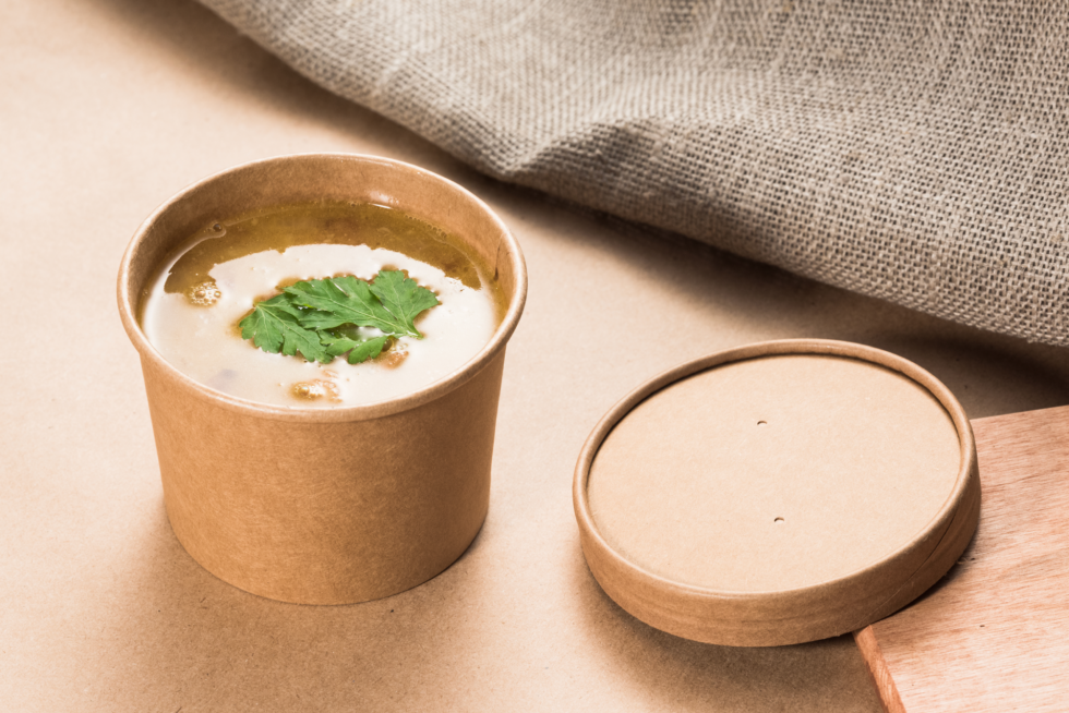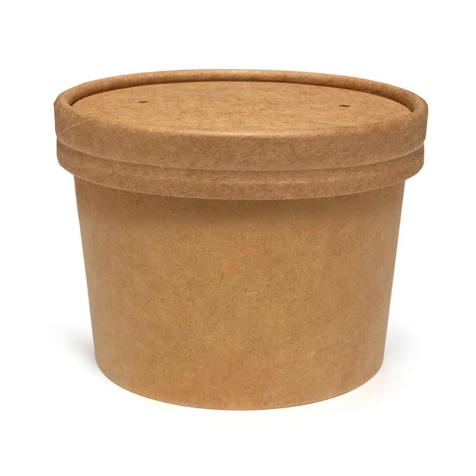 Paper lid that perfectly fits the Kraft Soup Container 16oz for a 100% kraft delivery solution. The Kraft Paper lid is lined PP for hot usage and is microwaveable.