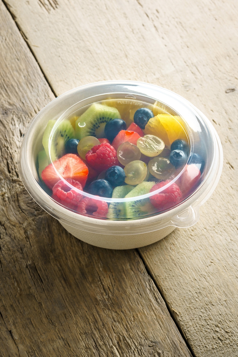 PP microwaveable lid that perfectly fits the BePulp round bowl 16cm. Our polypropylene lid is a fully heat-resistant & microwaveabe solution. PP lid is high quality and minimum 30% recycled material. It offers a excellent product visibility in shelves.