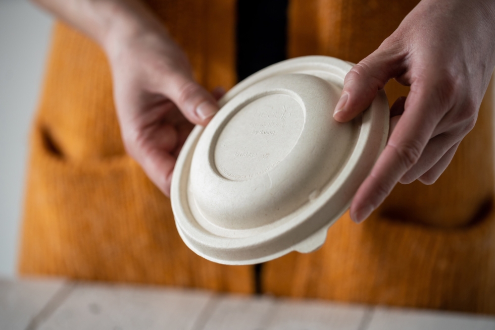 Pulp lid that perfectly fits BePulp Buddha Bowl 17cm for a recyclable packaging solution. Go fo a natural plant based pulp lid and stay sustainable!