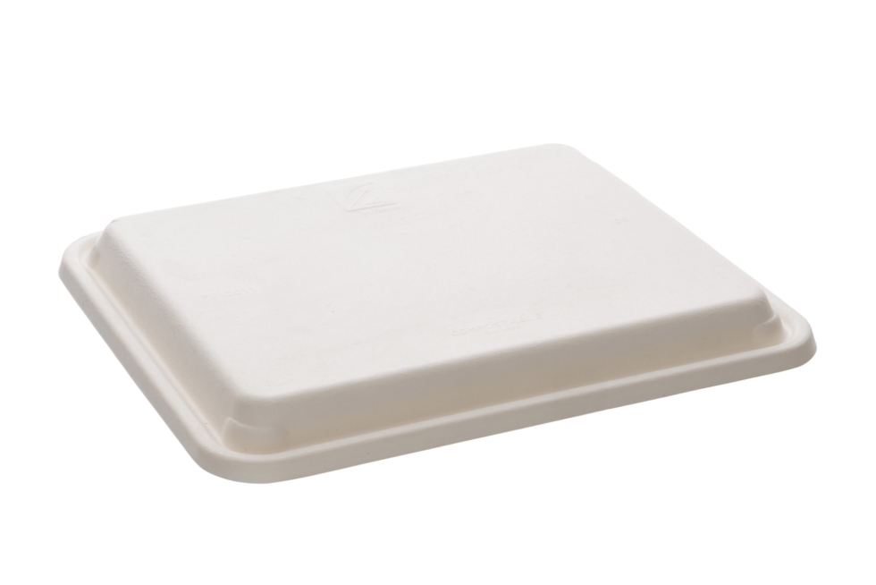 PULP lid for rectangular platter 5 compartments for a recyclable packaging solution. Go fo a natural plant based pulp lid and stay sustainable!