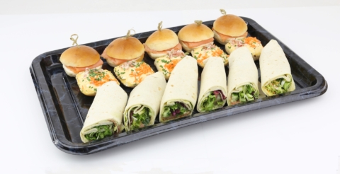 Sabert offers the largest assortment of recycled and recyclable PET platters trays and lids, with a very large choice of design, colours and dimensions. Thanks to an exclusive lamination process, Sabert black, marble, but also silver Platters offer outstanding renders with perfect illusion of stainless steel and reusable catering platters and become the best sandwich trays with lids option!