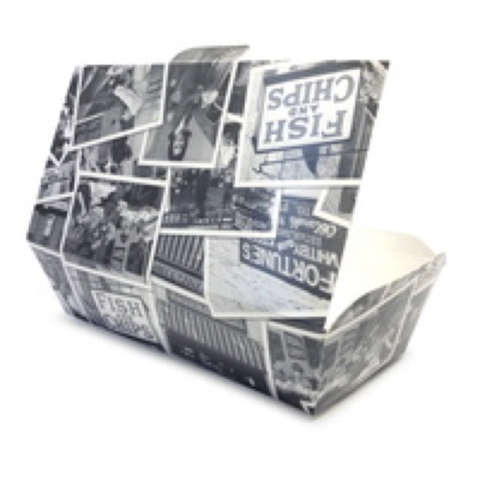 Who can remember not so long ago when takeaway fish and chips were wrapped and served in yesterday’s newspaper? ’Retro Newsprint’ captures this Great British nostalgia with a simply genius printed newspaper style packaging design! What better way to serve crispy battered fish and tasty golden chips than in the Retro newsprint range... this British favourite has never looked so good!