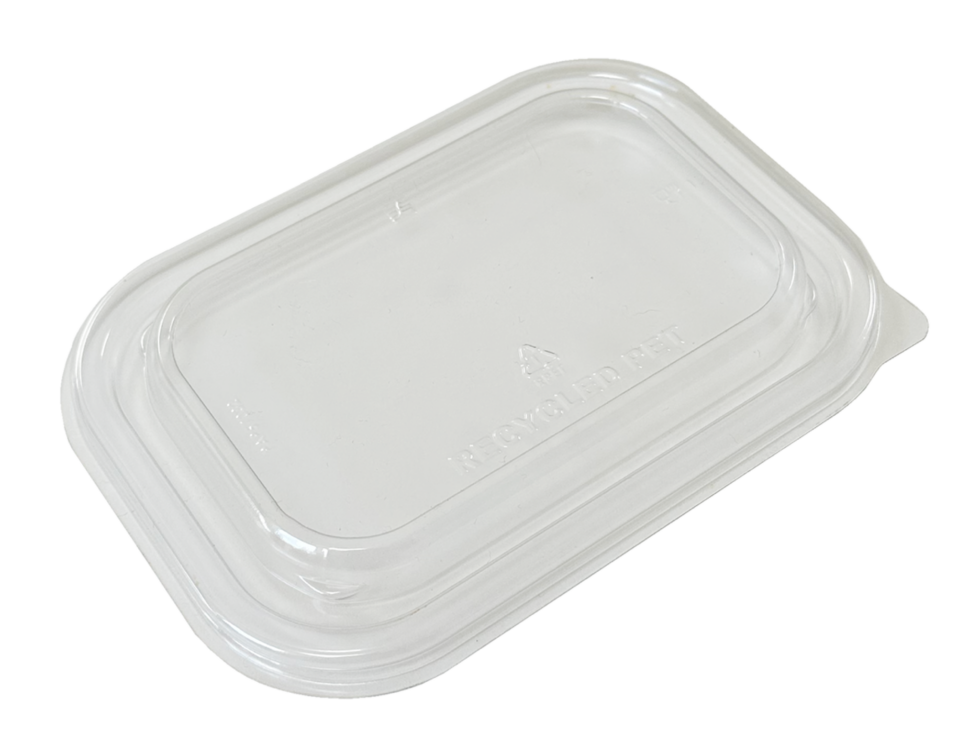 High clarity rPET clear lid that perfectly fits the whole range of Rectangular bowls 500, 650, 750 & 1000ml. Choose our anti-fog post consumer recycled PET lids that ensure your food remains on show at all times. The rPET lid ensures maximum product visibility and is made from at least 50% recycled materials.