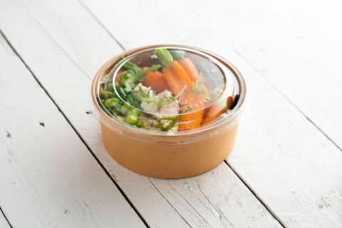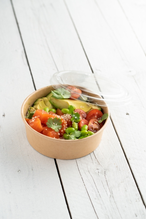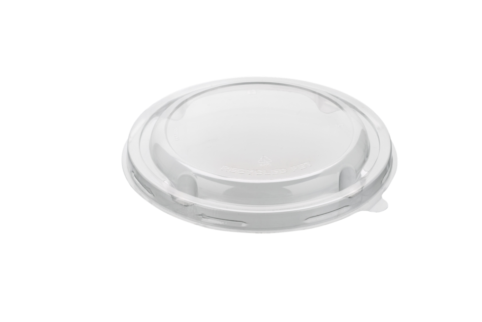 High clarity rPET clear lid that perfectly fits our Kraft round tray 1000ml. Choose our anti-fog post consumer recycled PET lids that ensure your food remains on show at all times. The rPET lid ensures maximum product visibility and is made from at least 50% recycled materials.